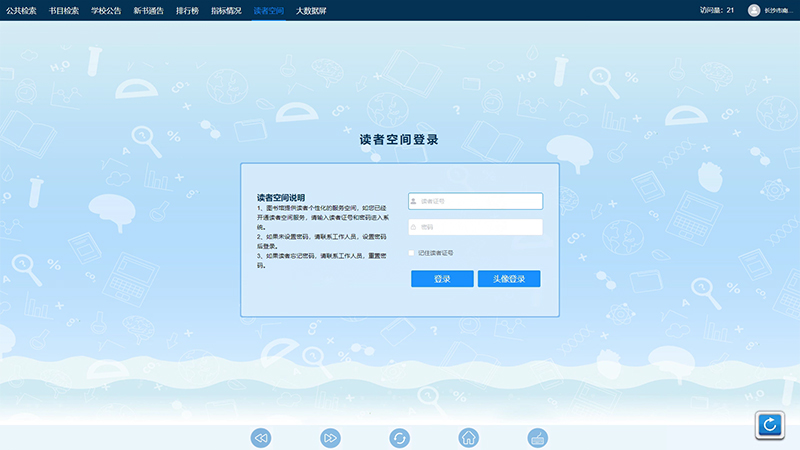 讀者空間:登錄OAPC系統(tǒng),可查查看我借閱的圖書,可續(xù)借圖書,針對欠費金額查看,可借剩余圖書數(shù)量查詢等。