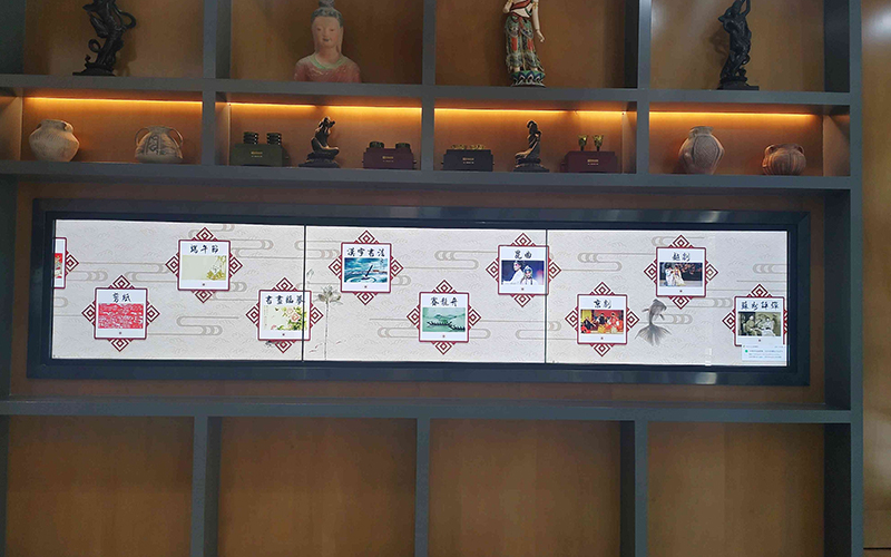 文化長廊展示系統(tǒng)由橫向的屏幕拼接而成,利用先進的拼接工藝,加上觸摸互動功能,打造一條極具視覺沖擊力的文化長廊。整條文化長廊可由 3 塊、6 塊或者 8 塊超窄拼縫的液晶屏幕拼接而成。除此之外,系統(tǒng)精選優(yōu)質(zhì)數(shù)字資源(圖片、視頻等),由右至左緩緩流動,宛如歷史長河源遠流長,歷史的經(jīng)典與現(xiàn)在科技的交融迸發(fā)出更閃亮的火花,通過人、媒、數(shù)據(jù)的互動,孕育不一樣的知識和服務。