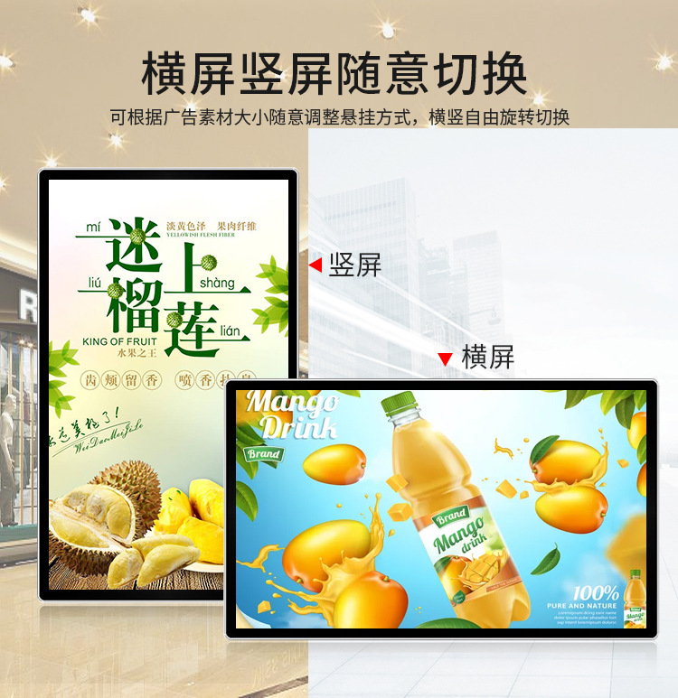 隨著人們生活水平的不斷提高,民以食為天越來越得到體現(xiàn),現(xiàn)在人們不僅要吃得好,還要干凈衛(wèi)生無污染,很多商家都在這上面下足了功夫,為了向顧客展示自己的美食品質(zhì),液晶廣告機就是很多商家的必然選擇。