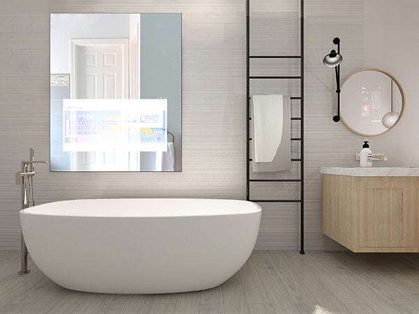 智能鏡開(kāi)啟后,鏡面上日歷、天氣、溫度等信息,還有熱點(diǎn)新聞推送、日程計(jì)劃提醒等統(tǒng)統(tǒng)一目了然,在衛(wèi)生間洗漱的同時(shí),可以在智能鏡子上看新聞、刷熱劇輕松實(shí)現(xiàn),智能鏡還能陪你聊天隨時(shí)為你點(diǎn)歌。具有防污防水防霧功能,可以在潮濕環(huán)境運(yùn)行,自動(dòng)加熱去除霧氣保證鏡面時(shí)刻處于待命工作狀態(tài),采用防污技術(shù)打造防污觸摸屏,不用擔(dān)心觸摸鏡子時(shí)沾上手指印或者其他污跡。