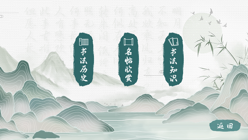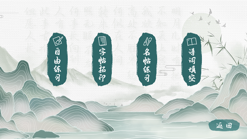 主界面:設(shè)備開機(jī)后會(huì)自動(dòng)打開軟件并進(jìn)入到書法體驗(yàn)軟件首界面。