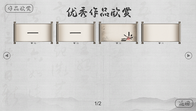 書法臨摹:點(diǎn)擊書法臨摹按鈕 則會(huì)進(jìn)入書法臨摹的選擇界面