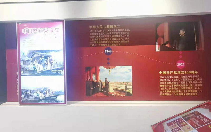 2、互動滑軌屏:在原有的黨建歷史時間軸加上滑軌屏,實現(xiàn)了人機交互,具備了交互性與實用性,將內(nèi)容以靜動態(tài)影像交互實現(xiàn),能多方位,更全面體現(xiàn)出黨建建設(shè)的歷史。