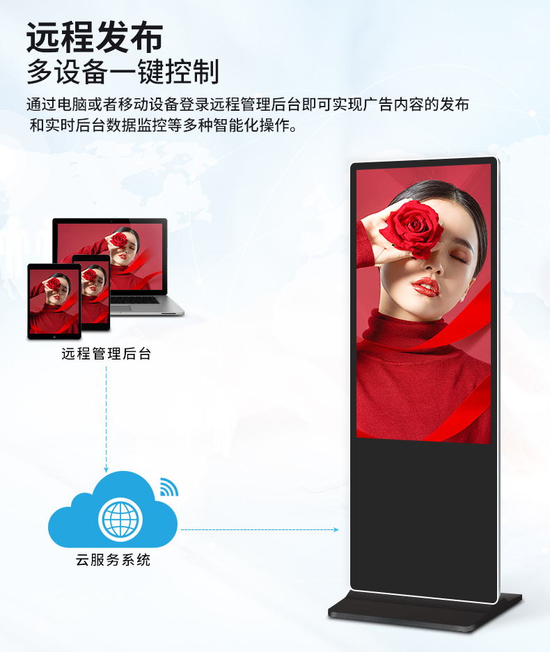 3、局域網(wǎng):液晶廣告機(jī)顧名思義是具有網(wǎng)絡(luò)功能的,所以,液晶廣告機(jī)一般都會(huì)在有網(wǎng)絡(luò)連接的的情況下進(jìn)行操作,通過(guò)后臺(tái)多媒體信息發(fā)布系統(tǒng)進(jìn)行系列節(jié)目發(fā)布;
