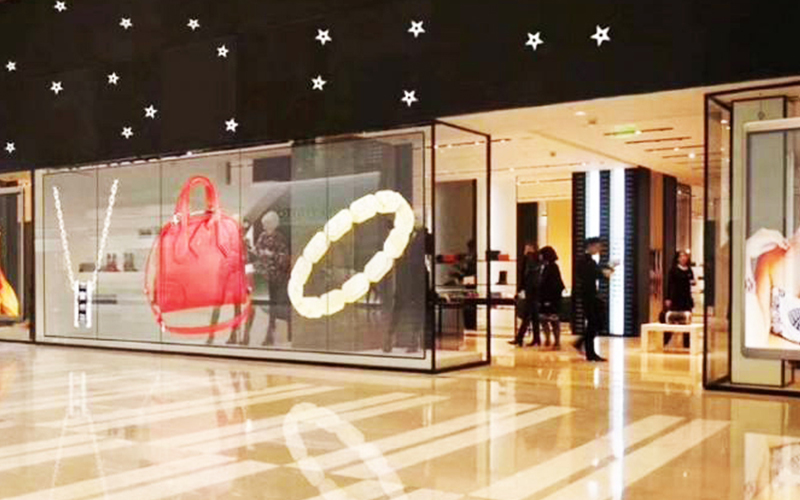 2、半戶外避陰環(huán)境,此類環(huán)境包含寫字樓玻璃幕墻、購(gòu)物中心、售樓部等等。半戶外避陰環(huán)境對(duì)透明屏的亮度要求比純室內(nèi)應(yīng)用環(huán)境要高,其亮度選擇應(yīng)該在3000-5000cd/㎡左右,以保障透明屏幕的正常顯示效果。