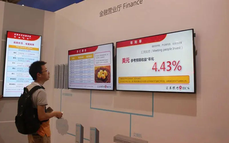 廣告機數(shù)字標牌,金融機構(gòu)能更好的宣傳品牌形象與業(yè)務(wù),用戶利用該廣告機數(shù)字標牌系統(tǒng)播放基準利率等金融信息、向客戶展示和介紹銀行業(yè)務(wù)與活動通知、播放統(tǒng)一企業(yè)文化即形象宣傳片等。