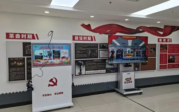 4、5G+VR黨建、思政教室:結(jié)合使用5G VR虛擬現(xiàn)實與3D VR展示系統(tǒng),VR黨建觸控大屏,AI多人互動技術(shù)。內(nèi)置豐富的黨建互動內(nèi)容,與現(xiàn)實展廳展覽內(nèi)容相結(jié)合,構(gòu)建沉浸式黨建觀展體驗。